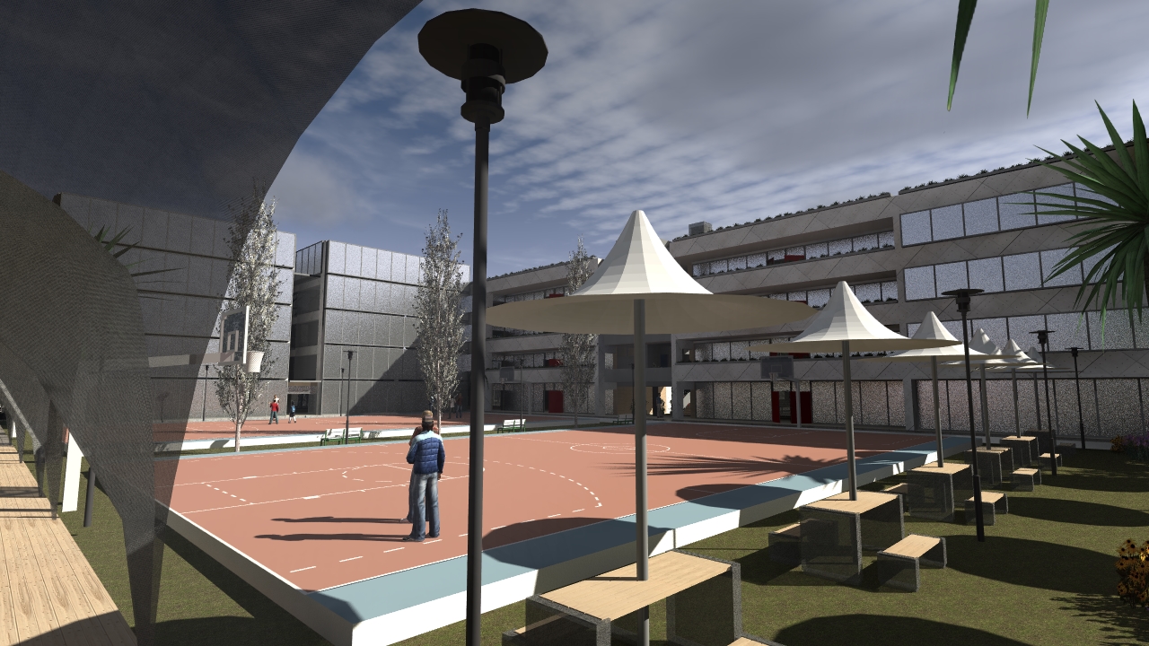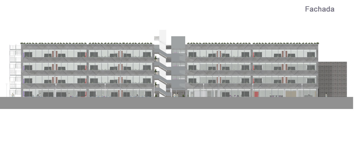 • The teaching building was designed on 4 levels, has free structural floor, so that the occupation is versatile. The structure is mainly of reinforced concrete, the facades have large glazed surfaces that provide adequate lighting to interior spaces, it includes the main school activities such as: