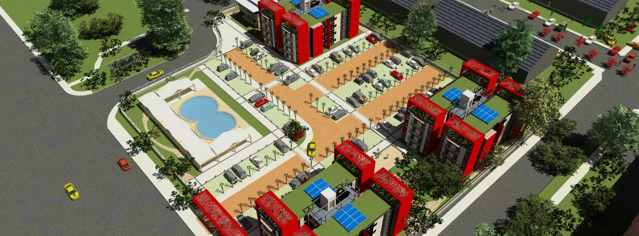 The complex 3 towers “Y” of 4 stories, 16 apartaments each, distribuited as follows: